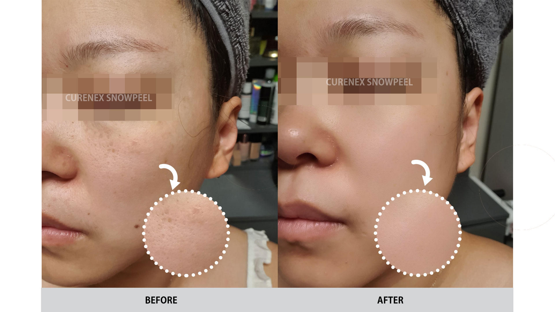 Curenex Snow Peel enhances skin metabolism and vitalizes damaged skin cells.