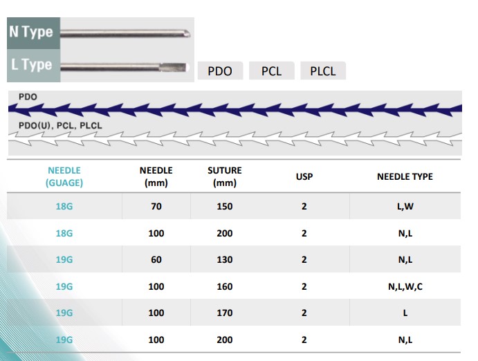 NVL_Bio Double Cog threads are the absorbable monofilament barbed sutures designed by patented technology for face lifting applications. Unlike other threads whose surfaces are cut or knotted or just mold to create cogs, the cogs of NVL_Bio Double Cog threads are created by mold cutting techniques to minimize the damage to the surfaces of the threads with remaining it thin (USP 2-0) therefore, the patient feels no discomfort from the presence of foreign materials in the face. BUT! Its tensile and anchoring strengths are superior to other thread products by patented unique technology.